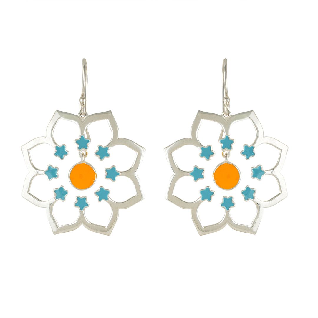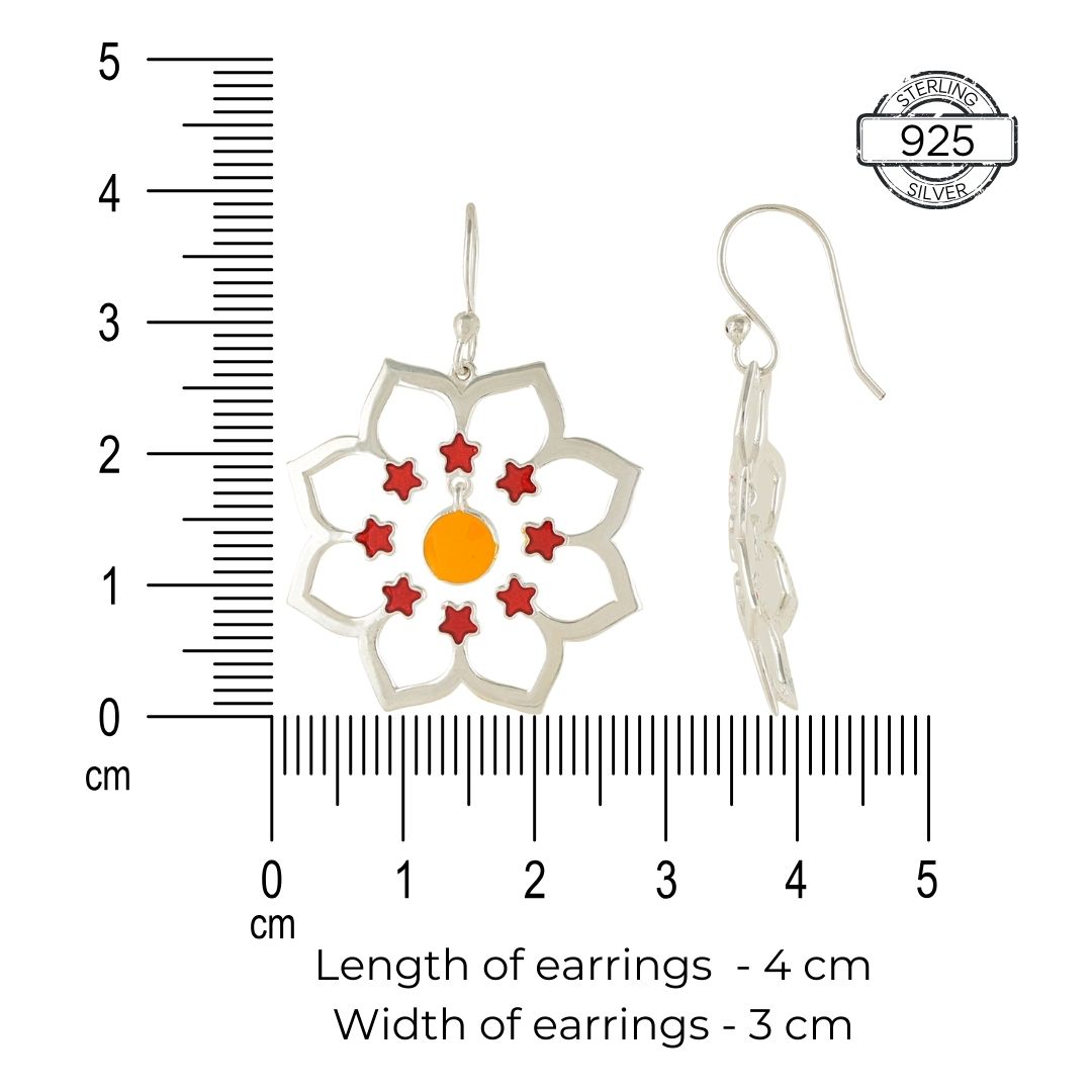 Capture the essence of elegance and tradition with these exquisite 92.5 sterling silver earrings, intricately inspired by the vibrant colors of festive rangolis. Each piece is carefully crafted to reflect the beauty and joy of celebrating special occasions. Adorned with stunning enamel hues, these earrings are a perfect blend of sophistication and cultural charm. Elevate your style and embrace the festive spirit with these stunning silver earrings that are sure to make a statement wherever you go.