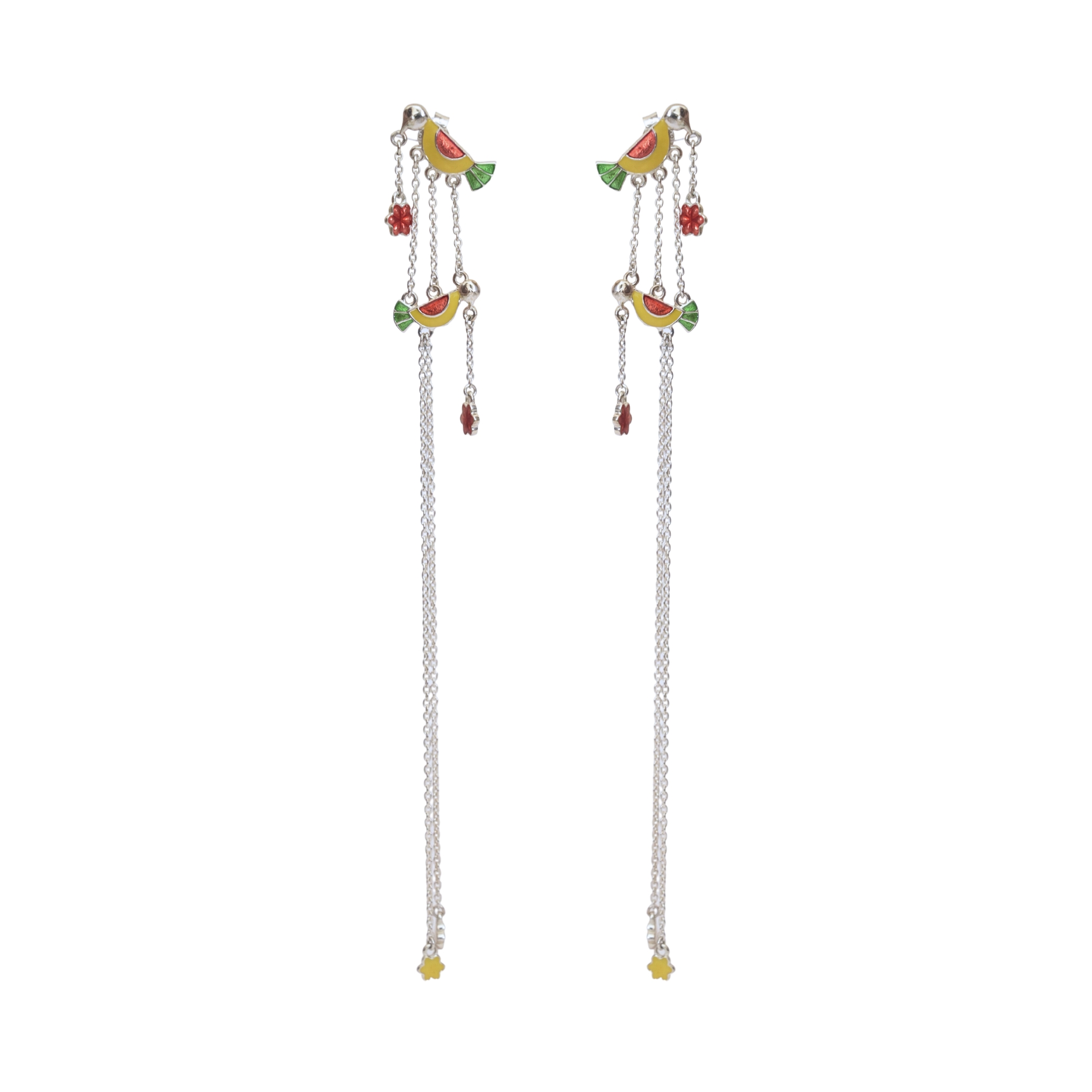 Introducing our the 92.5 sterling silver bird shoulder grazer earrings with vibrant enamel! These earrings are not just an accessory; they are here to make a statement. The intricate bird design is both unique and elegant, perfect for any fashion-forward individual. Made from high-quality sterling silver, these earrings are durable and long-lasting. Don’t miss out on the opportunity to add these exquisite shoulder-grazing earrings to your collection!