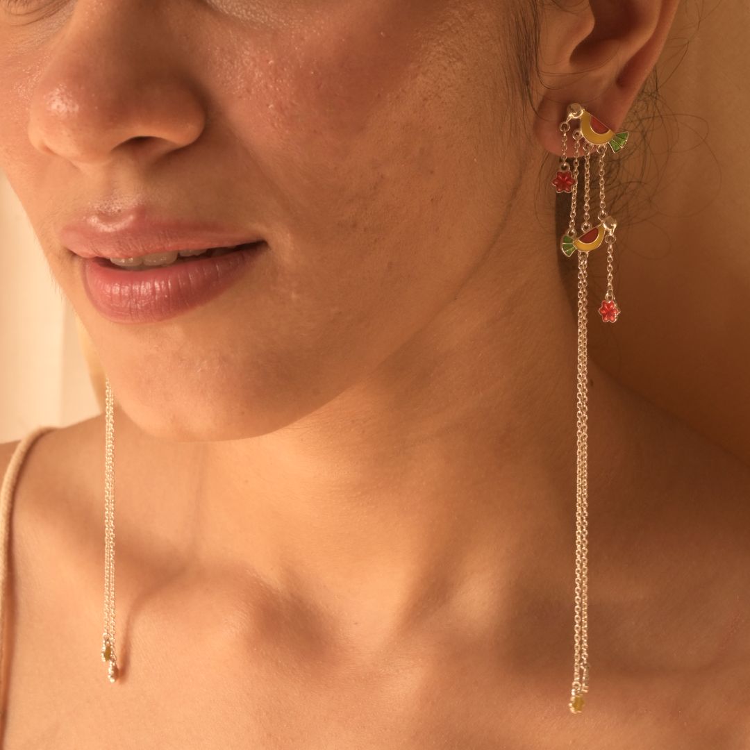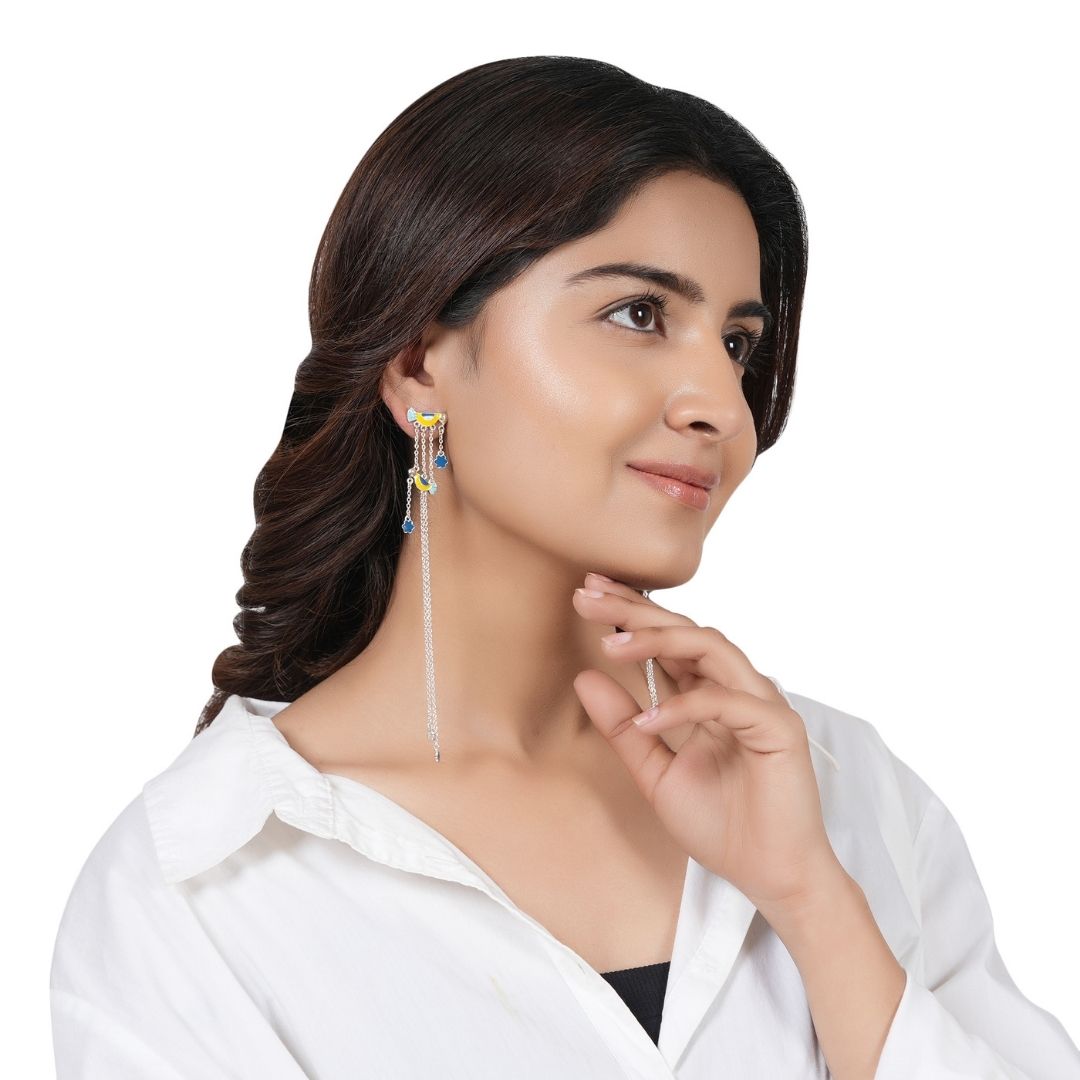 Style Tips : A collection of 92.5 sterling silver shoulder grazer earrings, these designs are here to make a statement colour. Bold, Stylish & Versatile they can be perfectly paired with your Western & Indian outfits with equal grace.