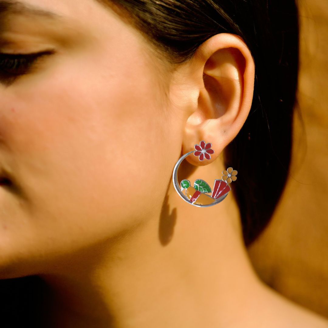 Style Tips: A Collection of 92.5 sterling silver earrings inspired by floral patterns gives them a dainty touch. The colourful enamel adds the extra cheer and vibrance to your mood.? These can be aptly? worn with your western and indo western attire. The enamel adds a touch of traditionality. So you can easily pair them up with your indian outfits too.