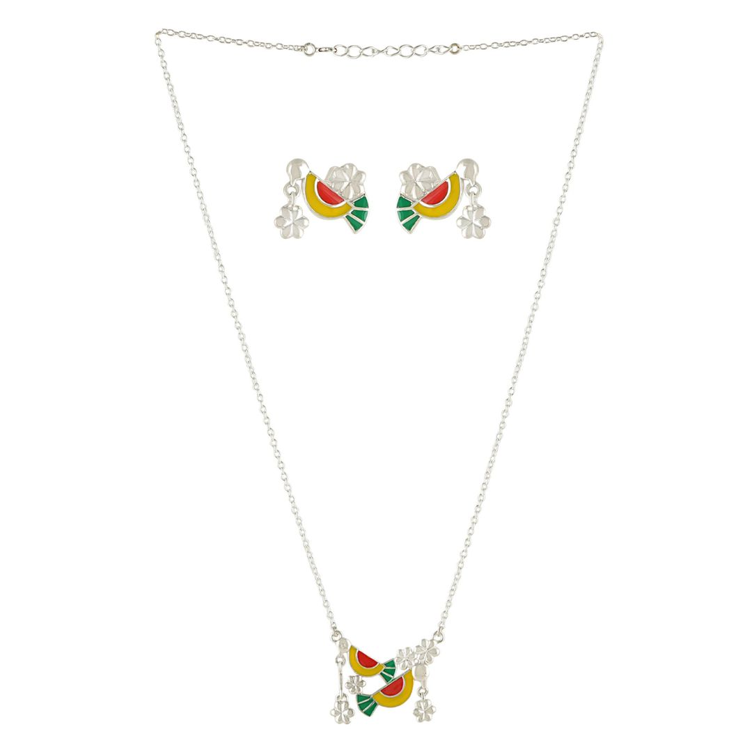 Damru 925 Silver Green Yellow Enamel Pendant with chain
