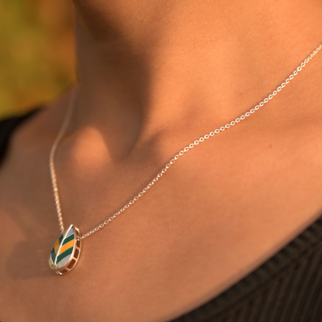 Crafted from high-quality 92.5% sterling silver, this pendant is both durable and elegant? making it the perfect accessory for formal occasions or everyday wear. Whether you’re looking for an exquisite gift or a beautiful addition to your jewelry collection, this green and yellow enamel leaf pendant is a must-have. Order yours today and experience the beauty and elegance of our high-quality sterling silver jewellery.
