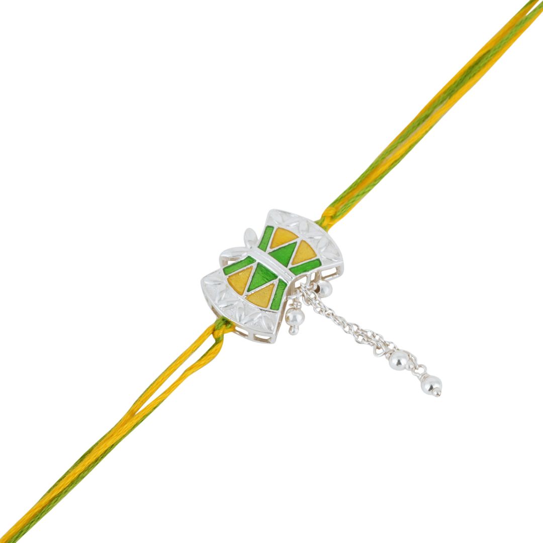 Damru 925 Silver Rakhi with Green & Yellow Enamel