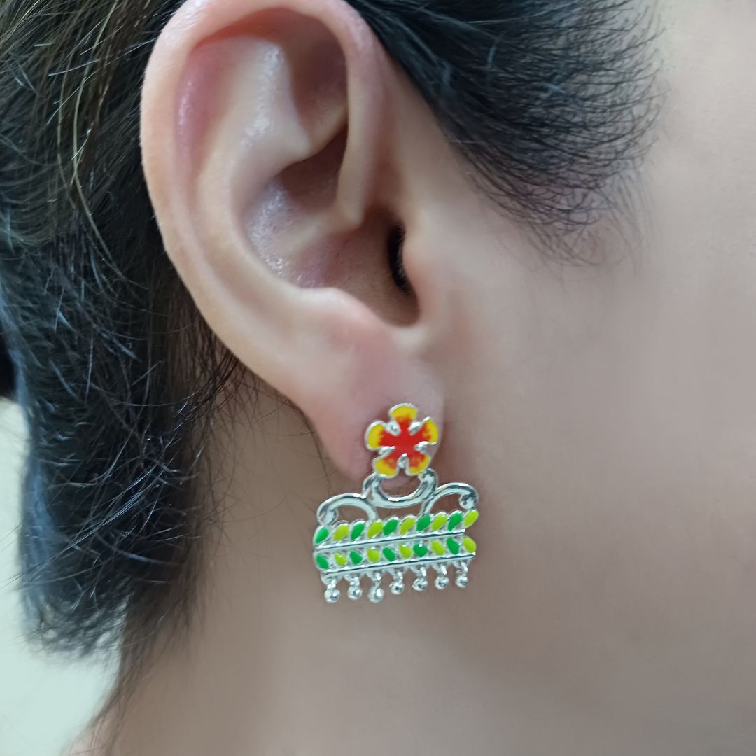 Style Tips : Embrace the Charm of Gulmohar with our 92.5 sterling silver jewellery collection Gulmohar, featuring vibrant enamel work in fiery reds and yellows. The lively colors and intricate designs are sure to uplift your mood. The designs are versatile, they complements both Indian and Western outfits and are perfect for any occasion. They are suitable for simple daytime elegance or layered glamour at night. Moreover they are a thoughtful gift for your loved ones.