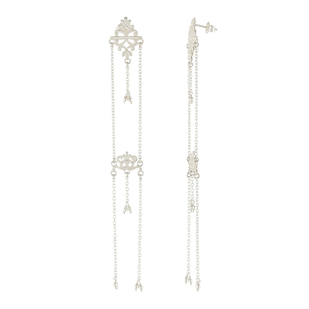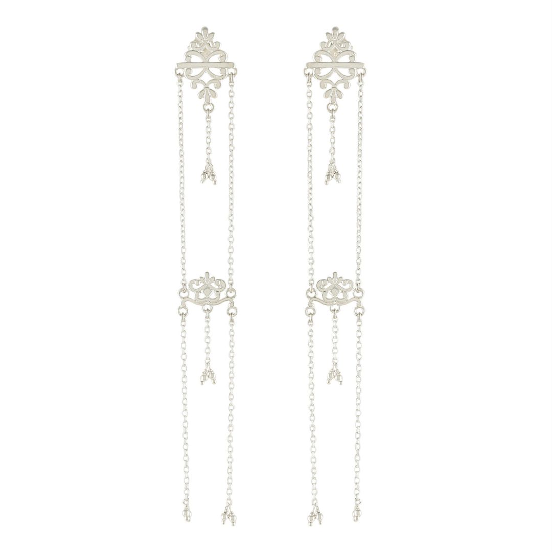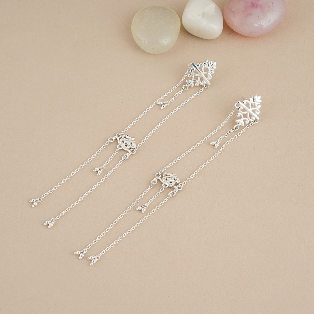 Filigree Dangle 925 Silver Shoulder Grazer Earrings