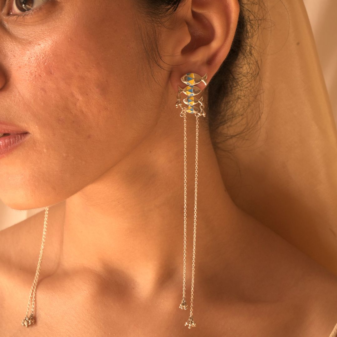The inspiration behind these earrings is drawn from the wonders of the underwater world. Fish are known to embody strength and perseverance, navigating through different water currents with grace and agility. Similarly, our earrings are crafted to embody these qualities, serving as a reminder of the beauty and resilience found in nature.