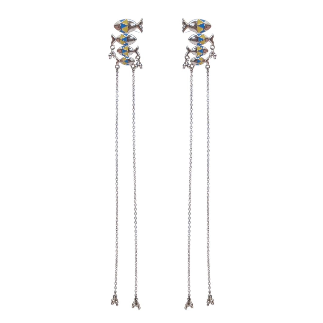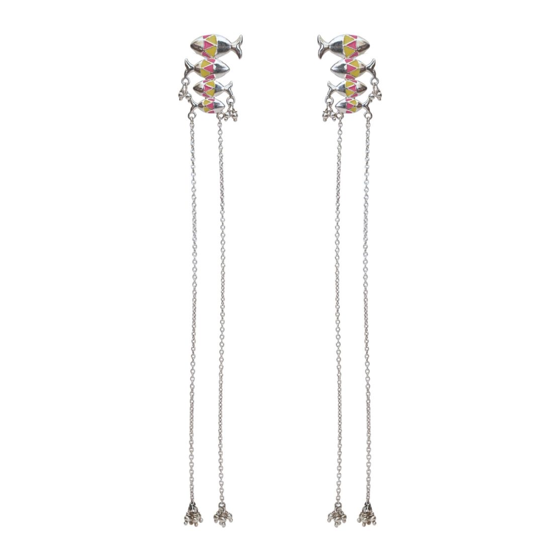 Our stunning pair of shoulder grazer earrings, crafted from high-quality 92.5 sterling silver are inspired by the vibrant colors of the ocean’s fish. Adorned with vivid enamel hues, these earrings showcase the beauty of marine life in a stylish and elegant way.