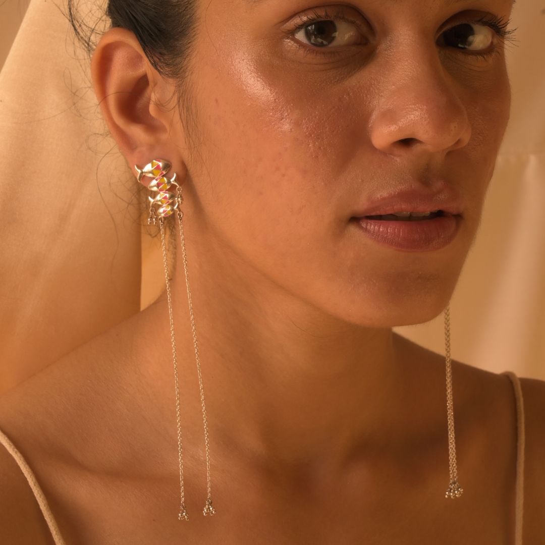 Style Tips : A collection of 92.5 sterling silver shoulder grazer earrings, these designs are here to make a statement colour. Bold, Stylish & Versatile they can be perfectly paired with your Western & Indian outfits with equal grace.