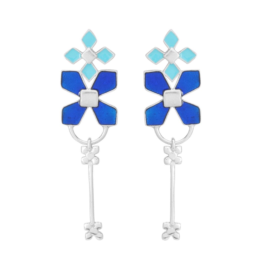 Style Tips: A Collection of 92.5 sterling silver earrings inspired by floral patterns gives them a dainty touch. The colourful enamel adds the extra cheer and vibrance to your mood. These can be aptly worn with your western and indo western attire. The enamel adds a touch of traditionality. So you can easily pair them up with your indian outfits too.