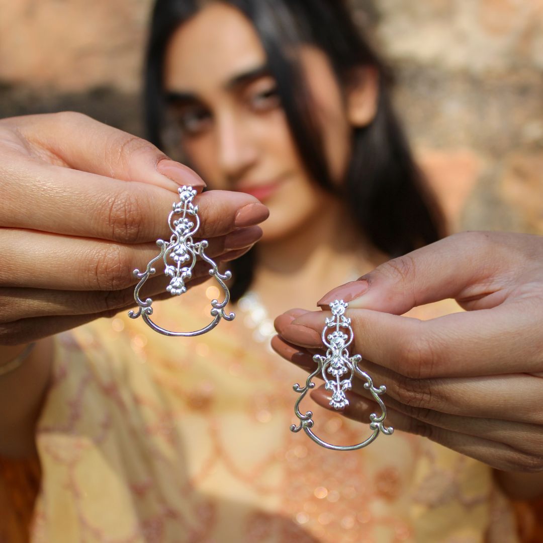 Inspiration : Introducing the “Cherished Blossoms” collection, a captivating ensemble of 925 silver earrings and necklaces that beautifully embodies the timeless elegance of traditional embroidery. Each piece is intricately designed, drawing inspiration from the delicate Bel Buta motifs that have been cherished through generations. The collection seamlessly blends the grace of these classic patterns with a modern twist, creating jewellery that is both sophisticated and versatile. Whether you’re dressing up for a special occasion or adding a touch of elegance to your everyday attire, the “Cherished Blossoms” collection offers a radiant expression of style and heritage, crafted with meticulous attention to detail and an appreciation for cultural artistry. Discover the charm and allure of these exquisite pieces, and let them become a treasured part of your jewellery collection.