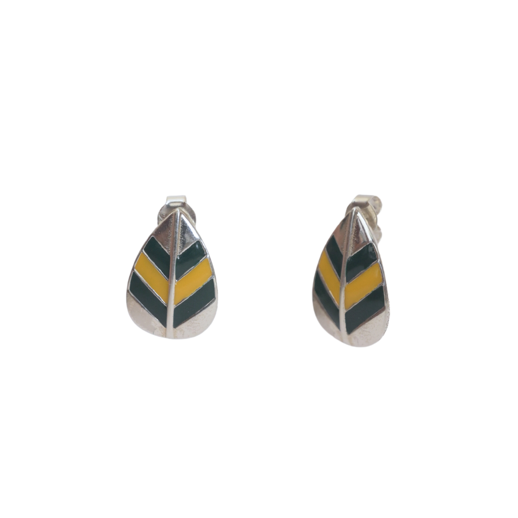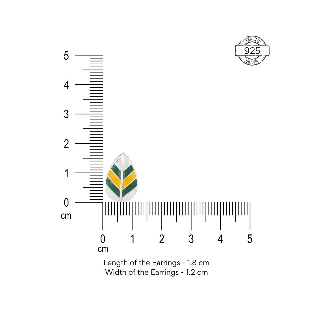 Style Tips: Pair these 92.5 sterling silver leaf ear studs with a flowing dress to accentuate their natural elegance and vibrant enamel colors. For a chic, modern look, style them with a simple white top and denim jeans, letting the green and yellow hues pop as your statement accessory.