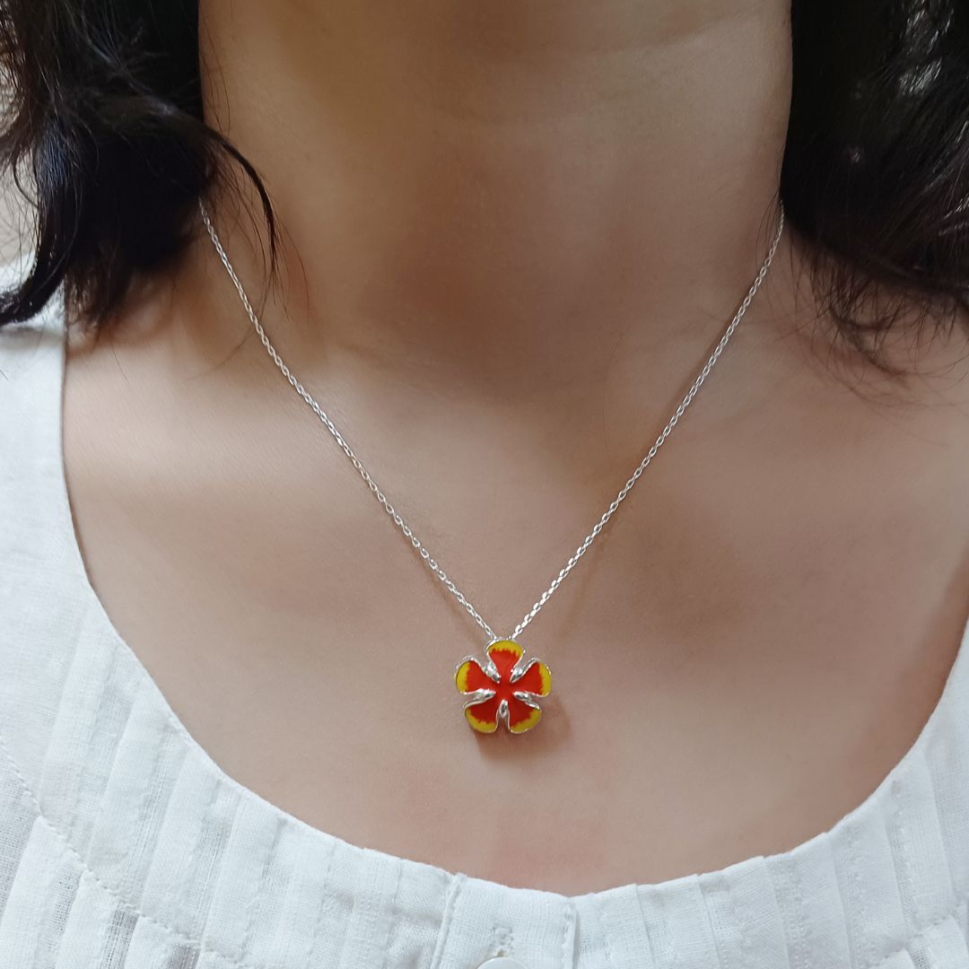 Gulmohar Flower 925 Silver Pendant with Chain