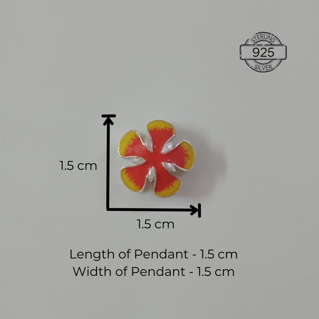 This Gulmohar Flower 925 Silver Pendant with Chain is meticulously crafted in 92.5 sterling silver, ensuring durability and a timeless shine. The vibrant red and yellow enamel colours perfectly mimic the enchanting hues of the beloved Gulmohar flower, bringing a touch of exotic charm to your ensemble.
