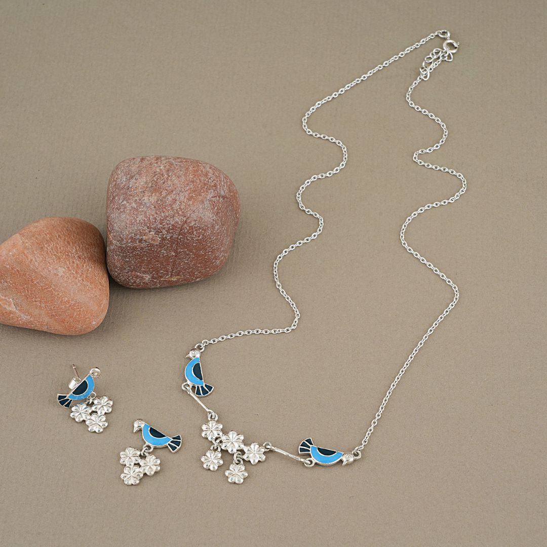 Make a Style Statement with this exquisite 92.5 Sterling Silver Bird Necklace Earrings Set. this set is perfect for the free-spirited individual looking to express their unique style. The intricate bird design adds a touch of vibrancy and color, making it a standout piece in any collection.