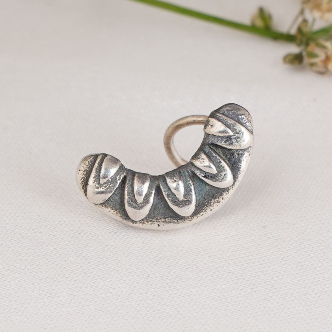Decorative & Stylish 92.5 Sterling Semi-circular Floral Nose pin.