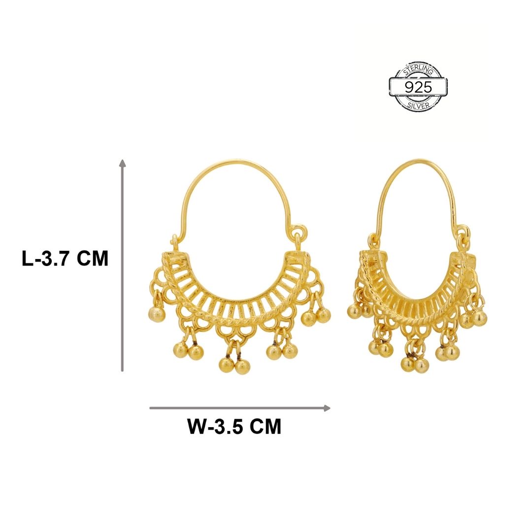 Chic Trendy Gold Plated Semi-circular 92.5 Sterling Silver Hoops with intricate jali design